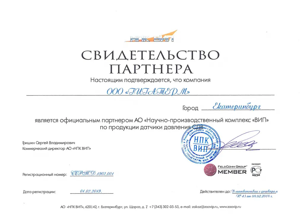 Компания Гигатерм является официальным дилером АО "НПК "ВИП"
