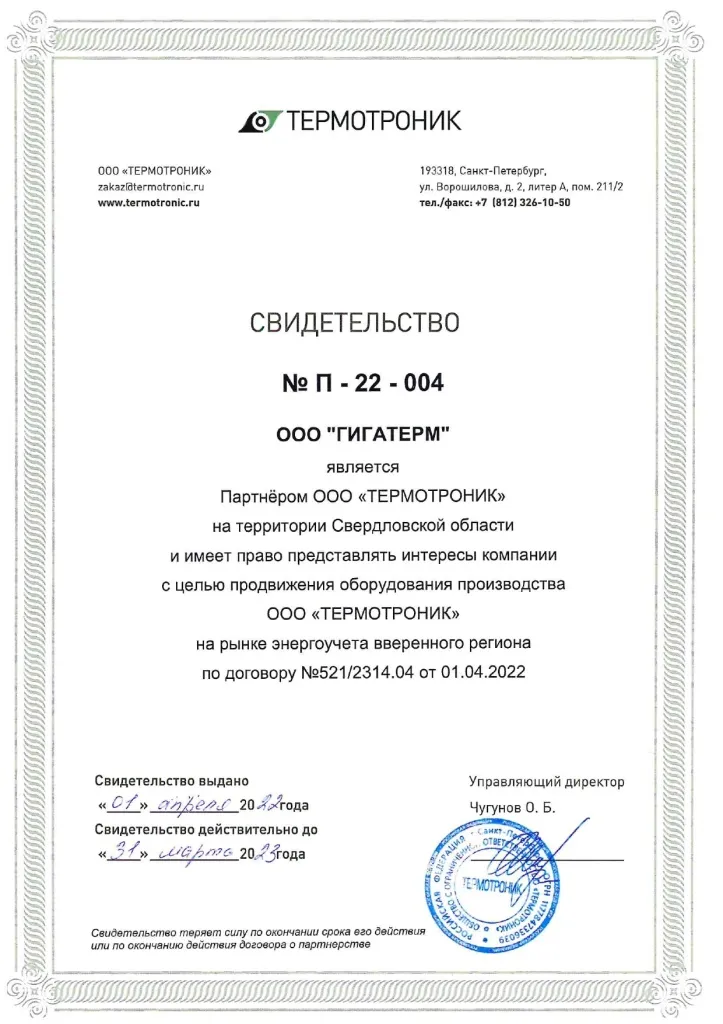 Компания Гигатерм является официальным дилером ООО "Термотроник"